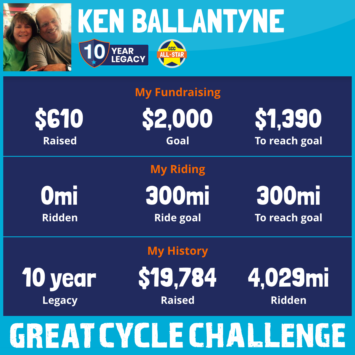 302 mi Ridden$1,655 Raised2023