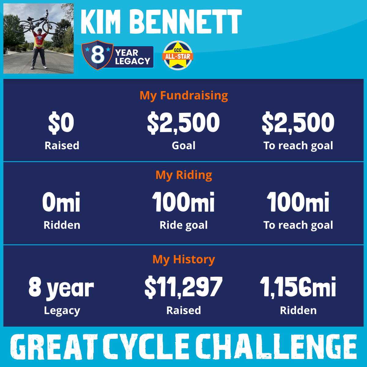 I've raised $0 My goal is $2,500 Donate Now