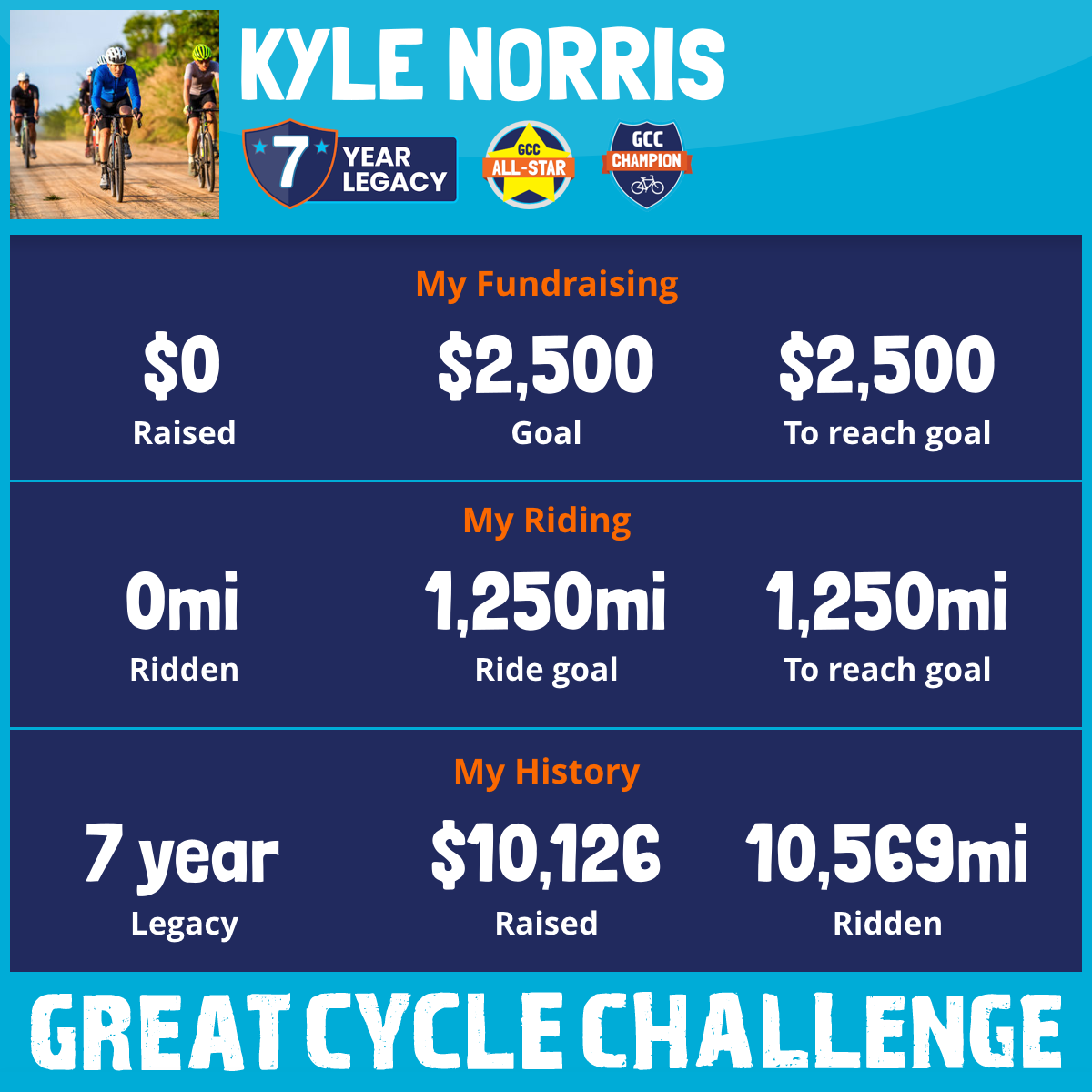 3,755 mi Ridden$3,241 Raised2021