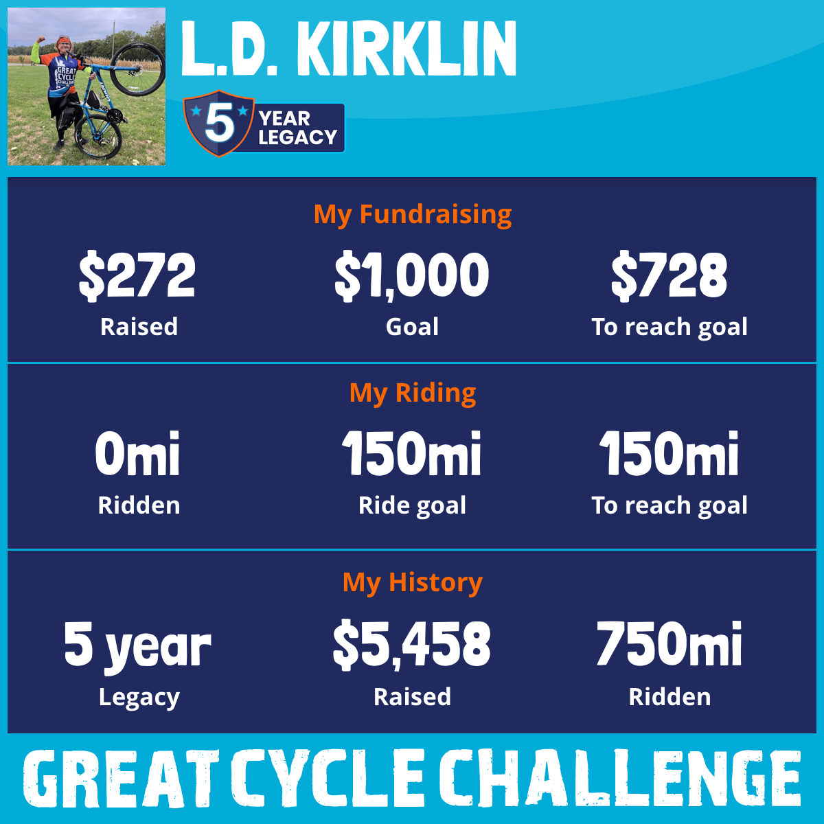When my pastor announced recently that he had been diagnosed with colon and liver cancer, I knew I needed to keep riding! While the money raised in this challenge goes toward cancer research for kids, I know that any and all research for cancer will help everyone. With God all things are possible!