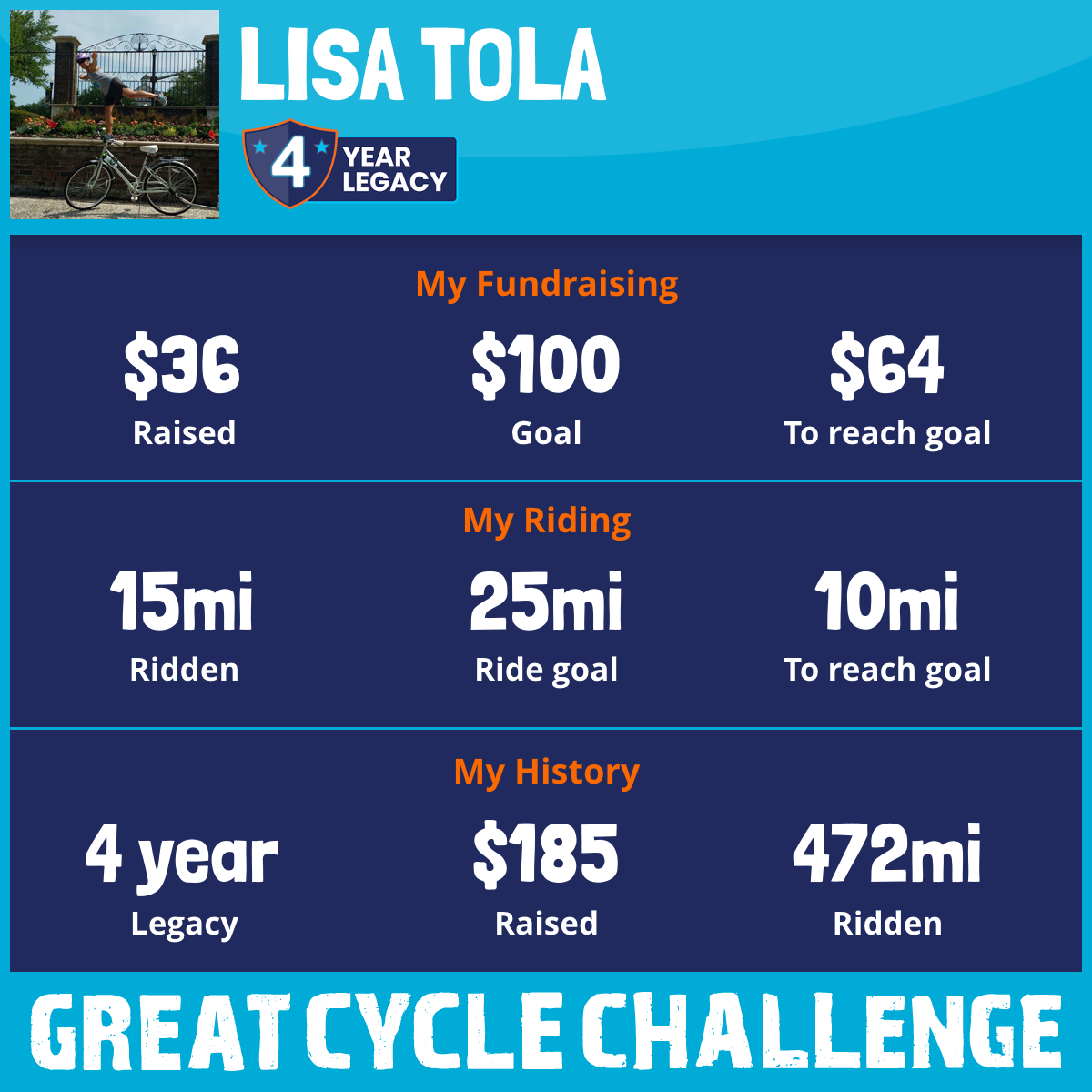 I am riding 25 mi to fight kids' cancer and save little lives. Please sponsor me to support my challenge!
