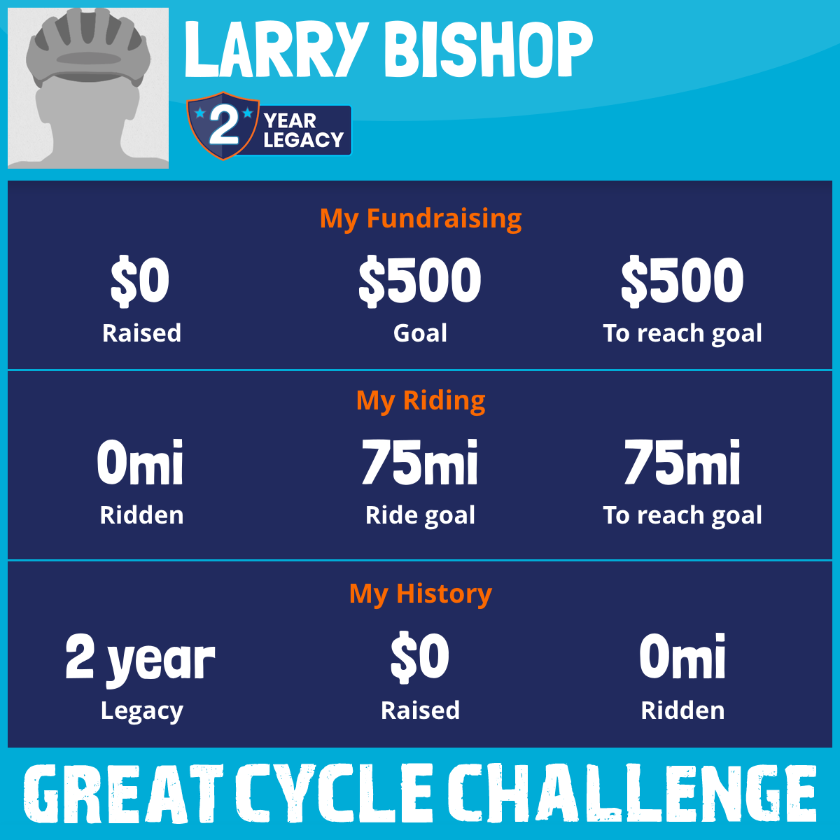 I've raised $0 My goal is $500 Donate Now