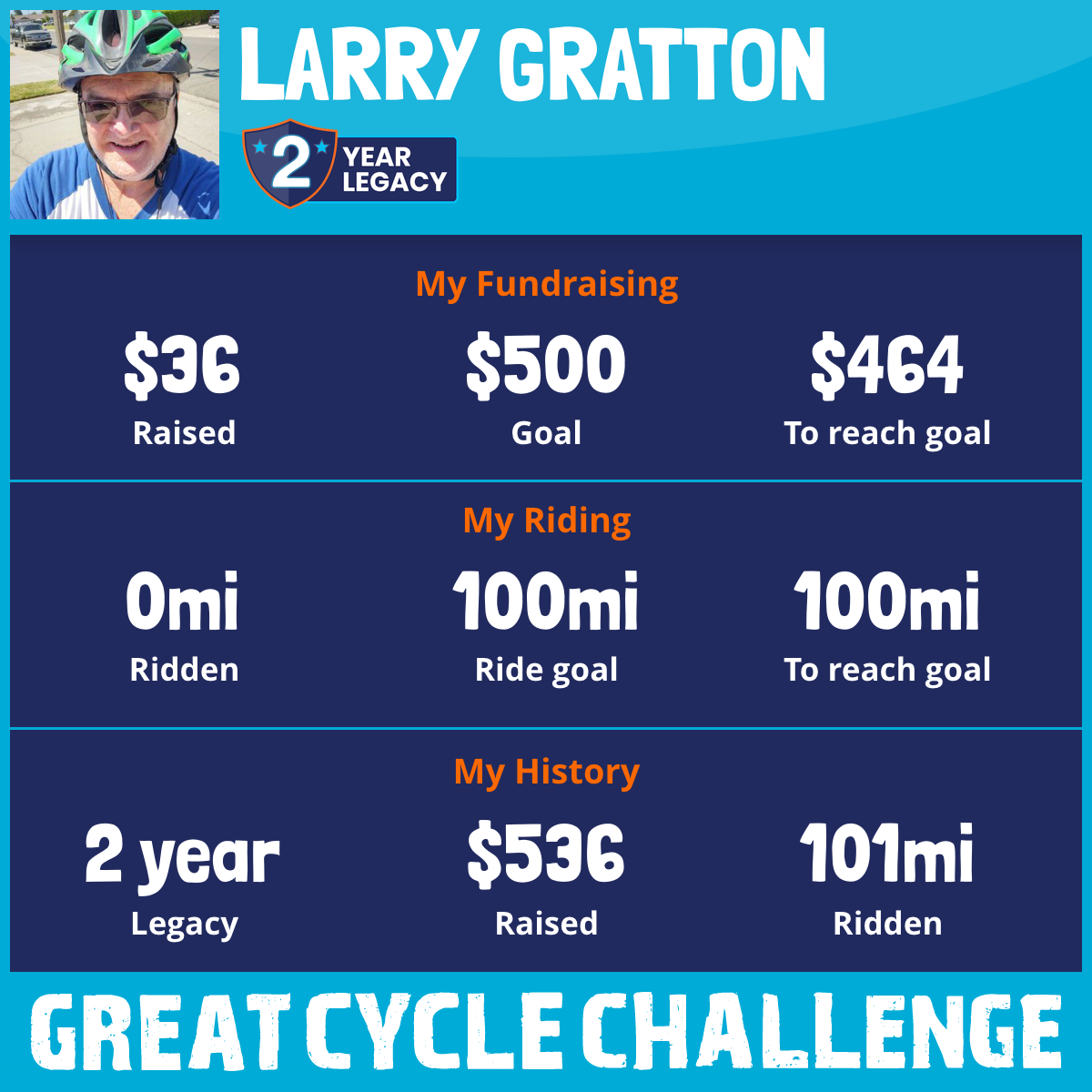 I am riding 100 mi for my friend, Carolyn and others. Please sponsor me and support my challenge to fight kids' cancer and save little lives.