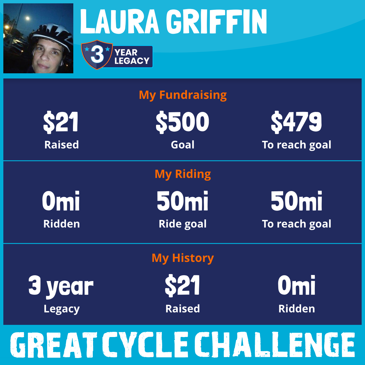 I am riding 50 mi for Nick. Please sponsor me and support my challenge to fight kids' cancer and save little lives.