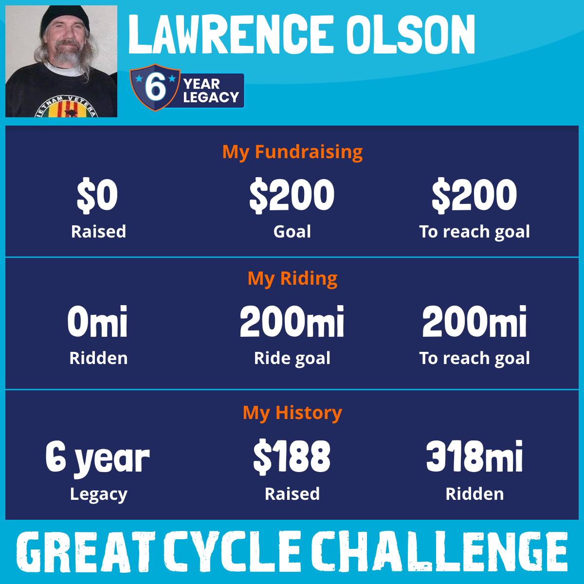 I have lymphoma cancer. Cancer killed both of my sisters and my mother and her mother. It is an on-going battle. My doctor said on July 2nd that I'm in remission and he would like to declare me cured now. I still have a mass the size of a soccer ball inside me. I have to get a stent replaced once a year because of that mass. I'm riding for Angelica Marie Tchokreff. She passed away in 2005. I sang a song I wrote for her at her funeral. My older brother was a Navy Veteran who committed suicide. My nephew was a Marine Veteran who also committed suicide. I'm lucky to be in remission. I almost died 3 times in 3 different hospitals... My new mission is to go to Hawai'i and ride all the way around every island to raise awareness about Veteran suicide and for the Native Hawai'ian Americans.