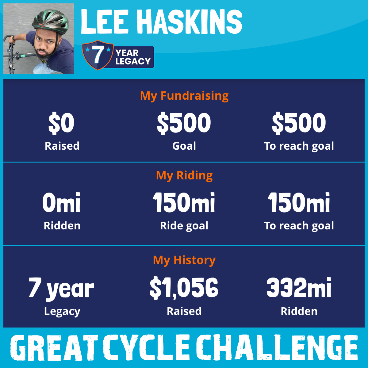 I am riding 150 mi in memory of Joan Haskins. Please sponsor me and support my challenge to fight kids' cancer and save little lives.