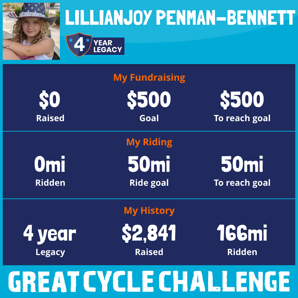 I've raised $0 My goal is $500 Donate Now