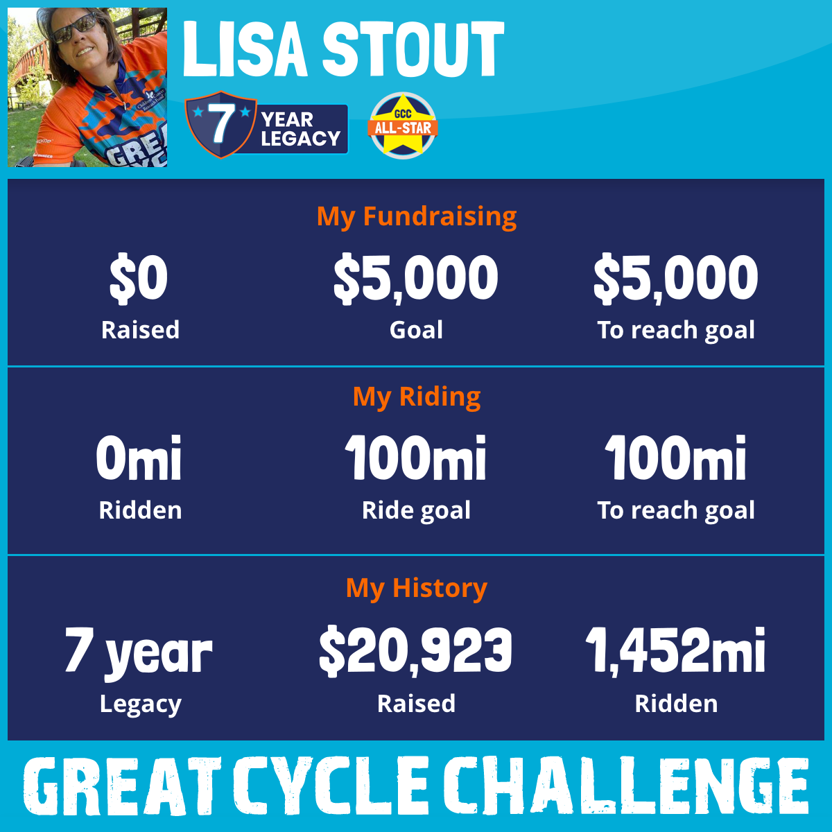This September 1st - 30th, 2025. I am taking part in the Great Cycle Challenge again for the 7th year in honor of Stephanie Marshall, to fight kids' cancer!
