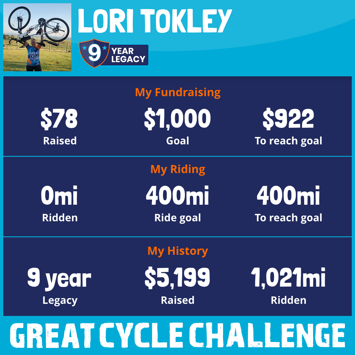 165 mi Ridden$1,600 Raised2023