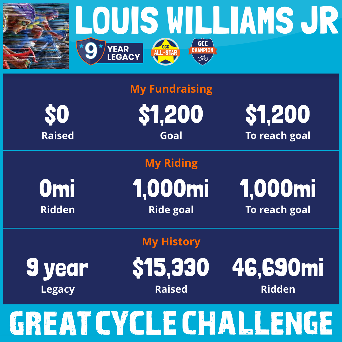 This September 2026, I am participating in the Great Cycle Challenge for my 10th year to raise funds to fight kids' cancer!