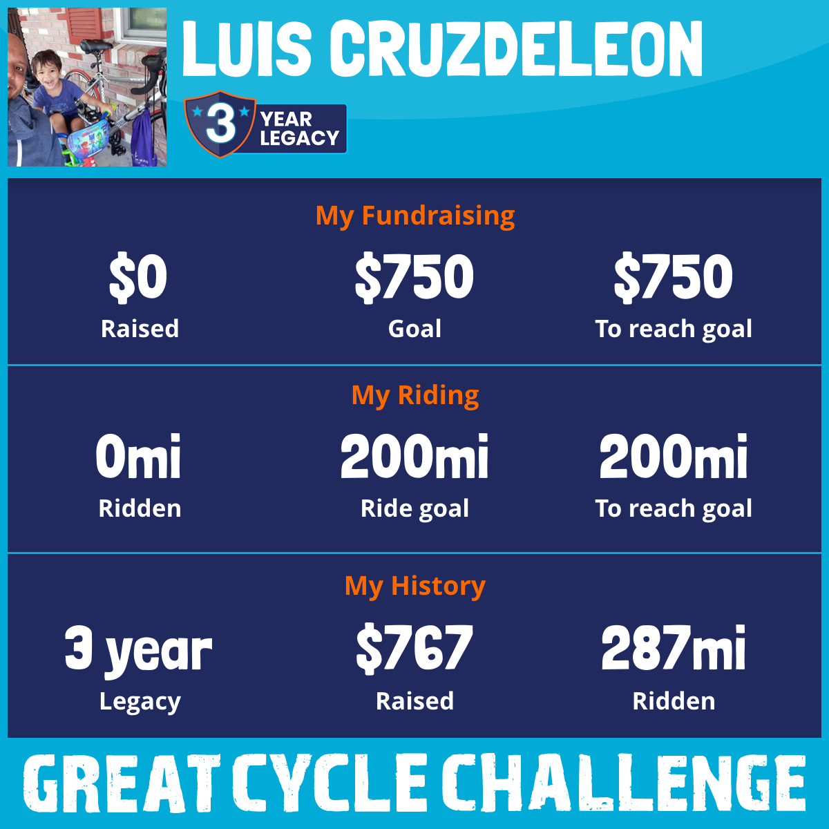 I am riding 200 mi in memory of Rafael Rivera & Hector Cruz. Please sponsor me and support my challenge to fight kids' cancer and save little lives.