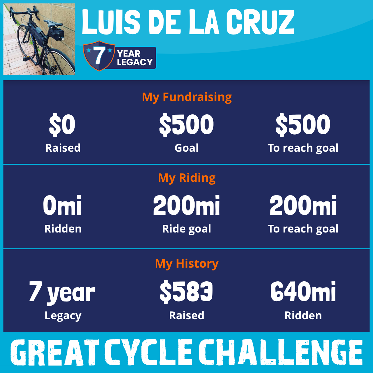 I am riding 200 mi for my loved one, Armando Amador, Tita Hedi, Jesus Garcia, Sierra. Please sponsor me and support my challenge to fight kids' cancer and save little lives.