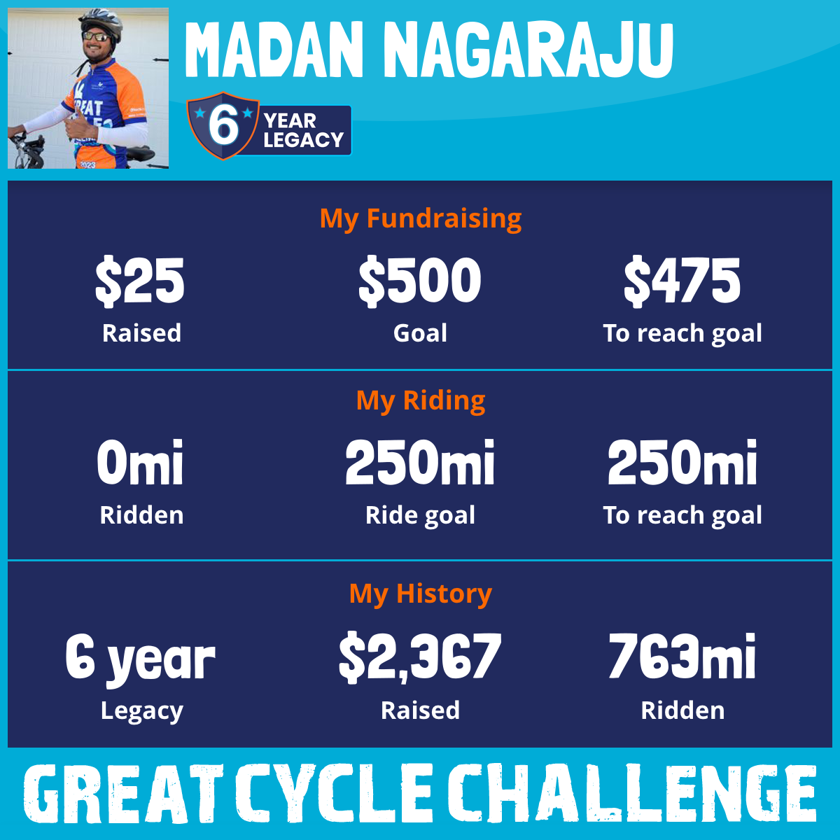 I am riding 250 mi for Children's Cancer Research. Please sponsor me and support my challenge to fight kids' cancer and save little lives.