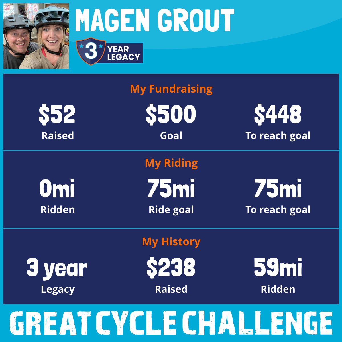I am riding 75 mi in memory of Beverly Leer, Randy Grout. Please sponsor me and support my challenge to fight kids' cancer and save little lives.
