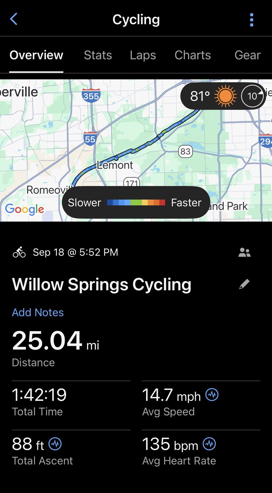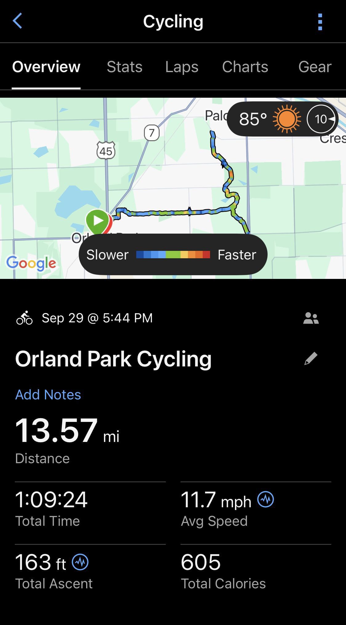 13.6 mi ride - Orland Park Cycling - Monday, September 29, 2025