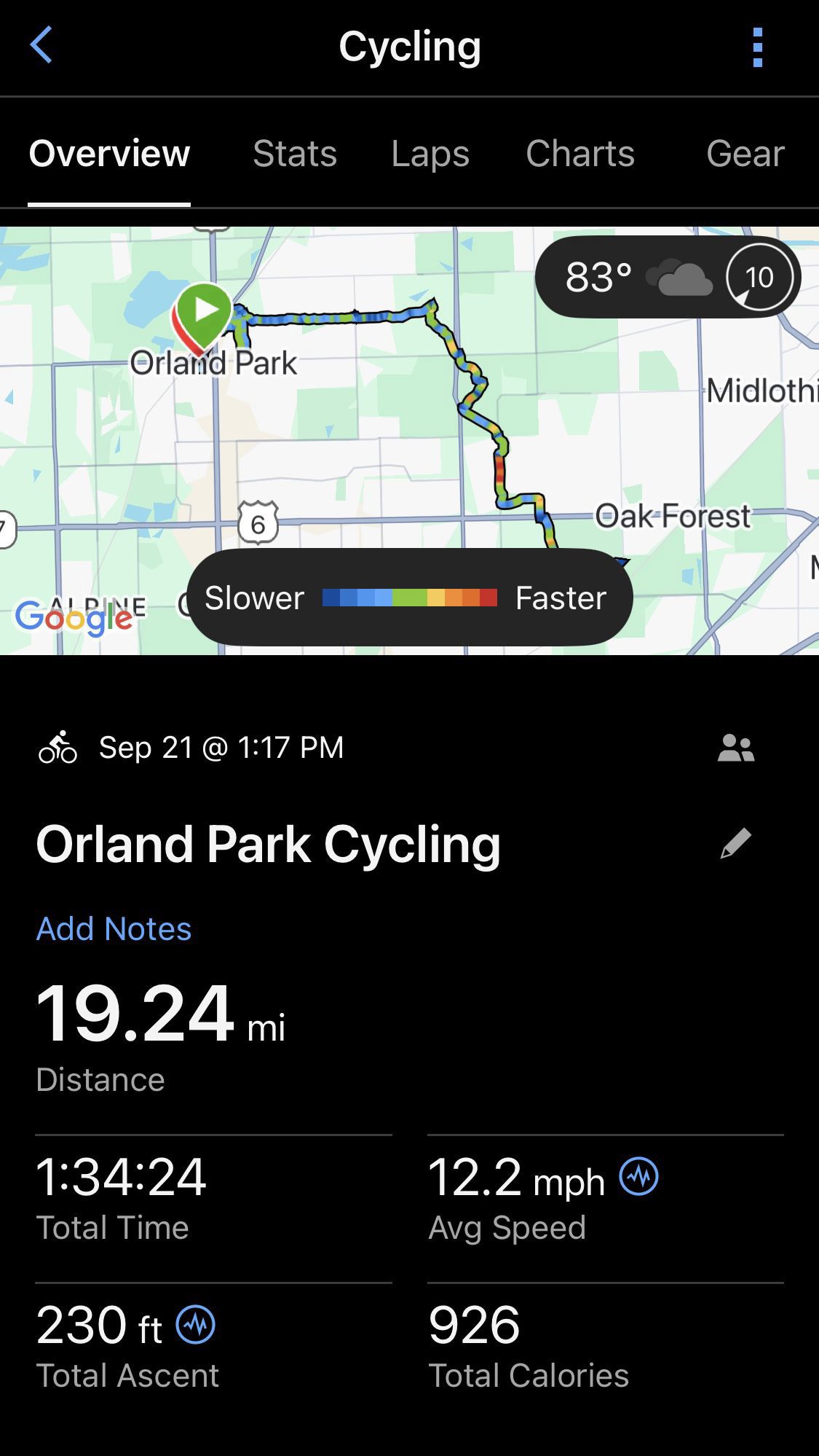 19.2 mi ride - Orland Park Cycling - Sunday, September 21, 2025