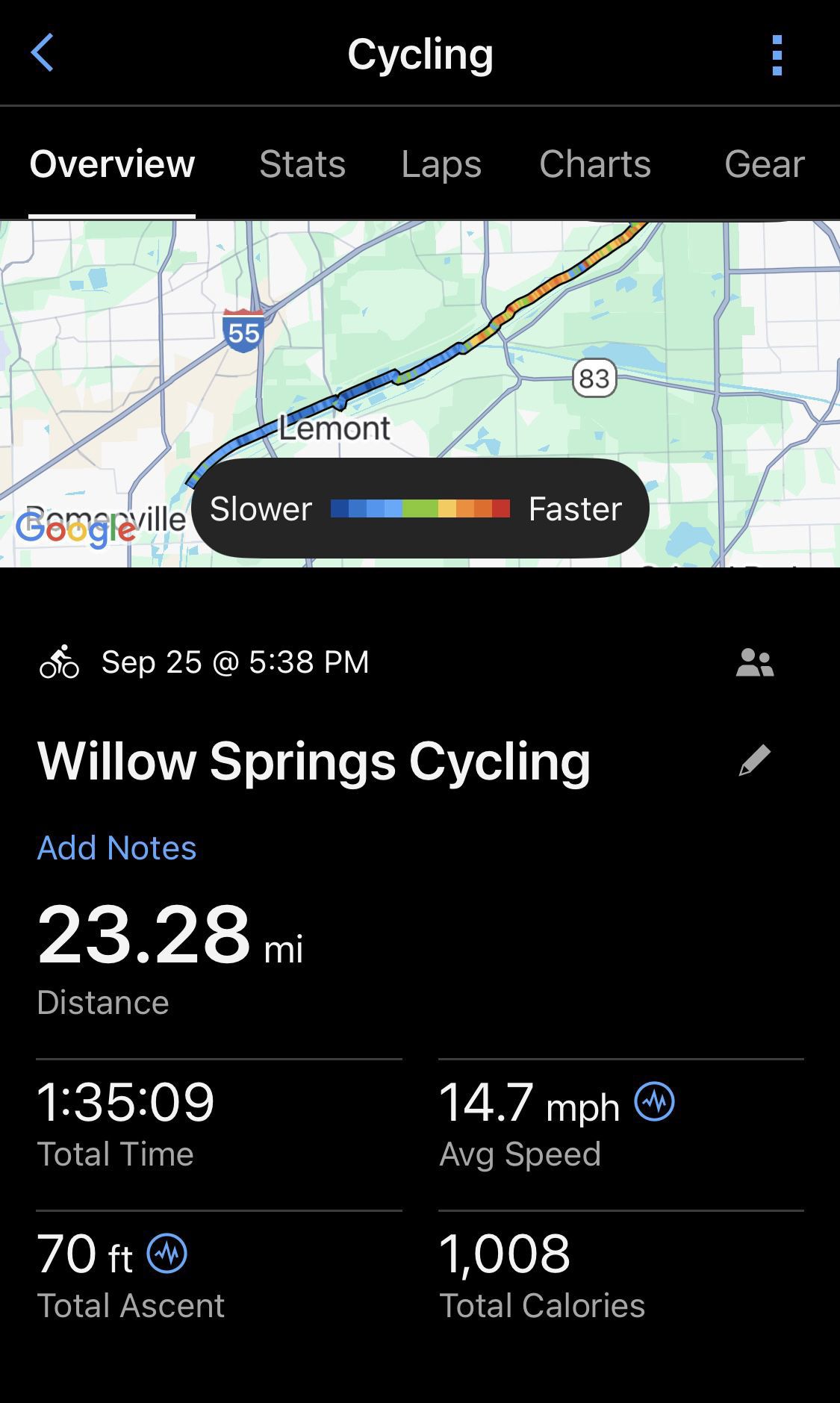 23.3 mi ride - Willow Springs Cycling - Thursday, September 25, 2025
