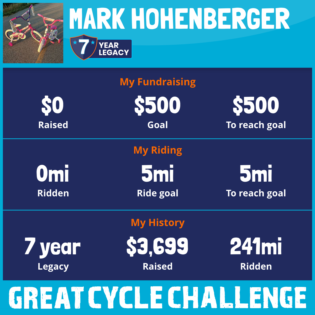 I am riding 5 mi to fight kids' cancer and save little lives. Please sponsor me to support my challenge!