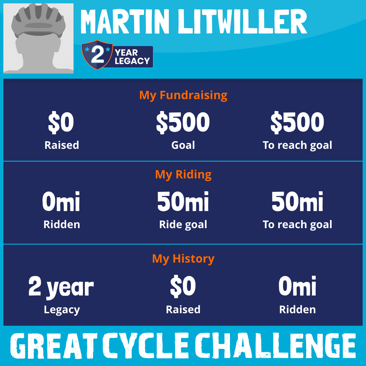 I am riding 50 mi for Grandma M. Please sponsor me and support my challenge to fight kids' cancer and save little lives.