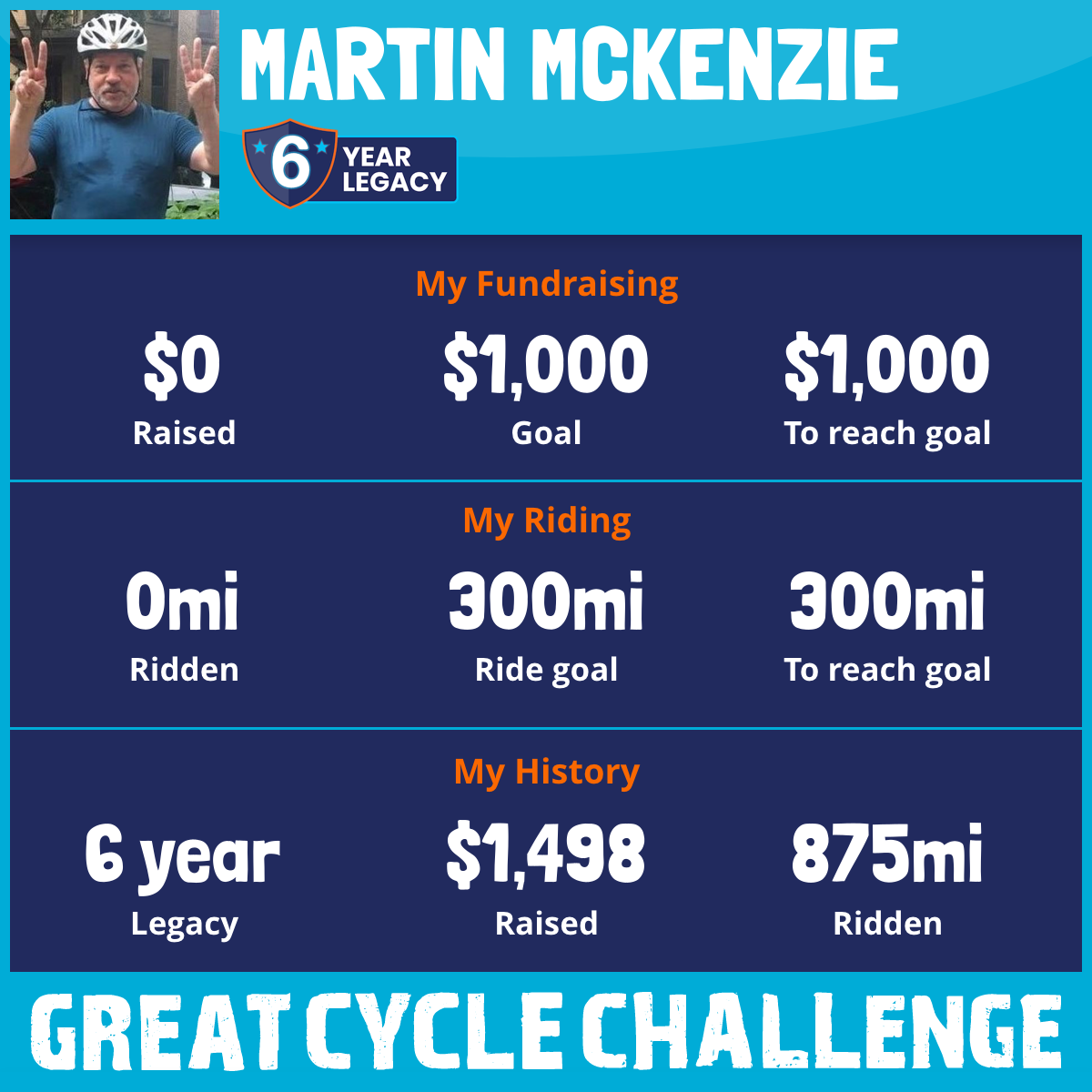 This September (2025) will be my 6th year where I am again taking part in the Great Cycle Challenge to fight kids' cancer!