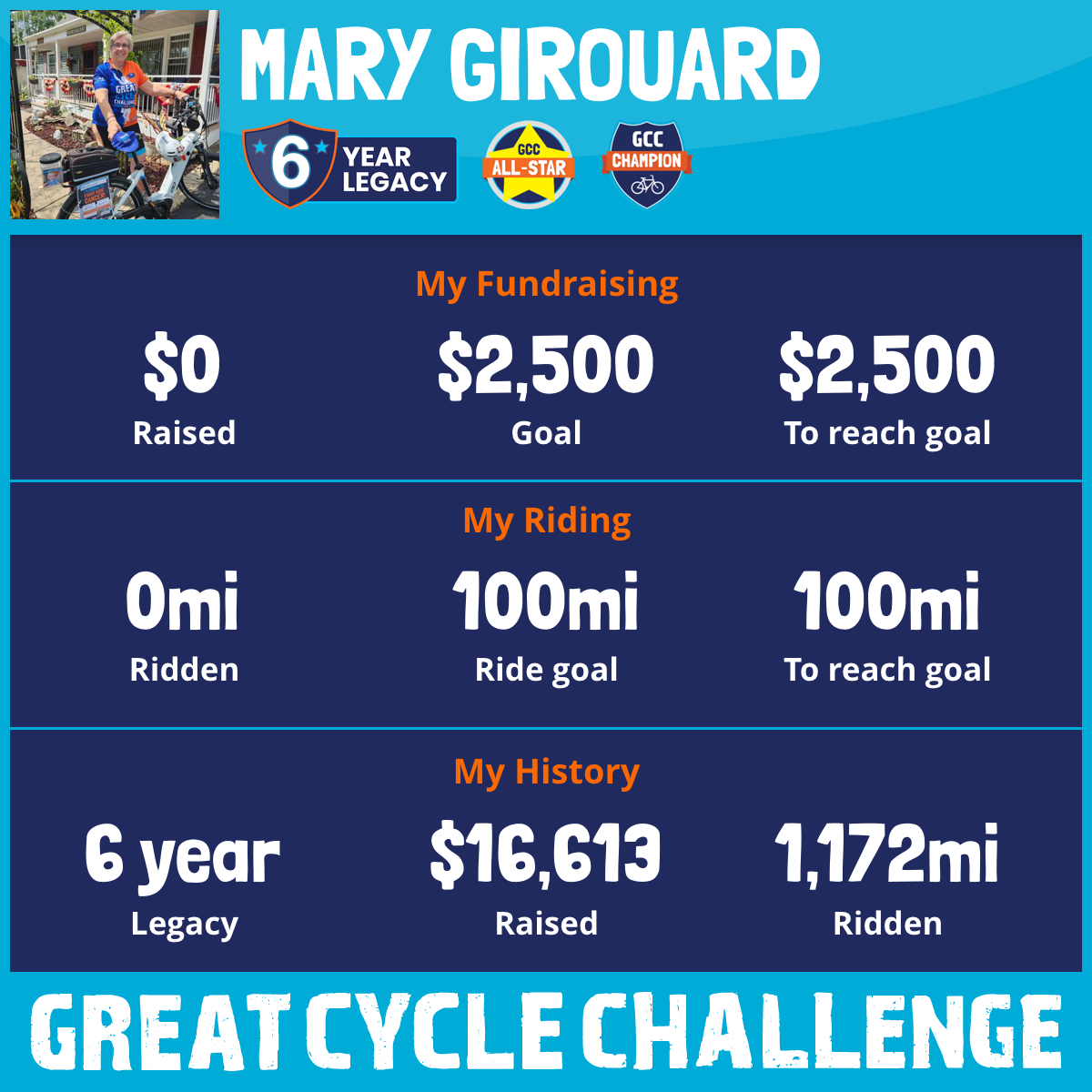 110 mi Ridden$5,401 Raised2025