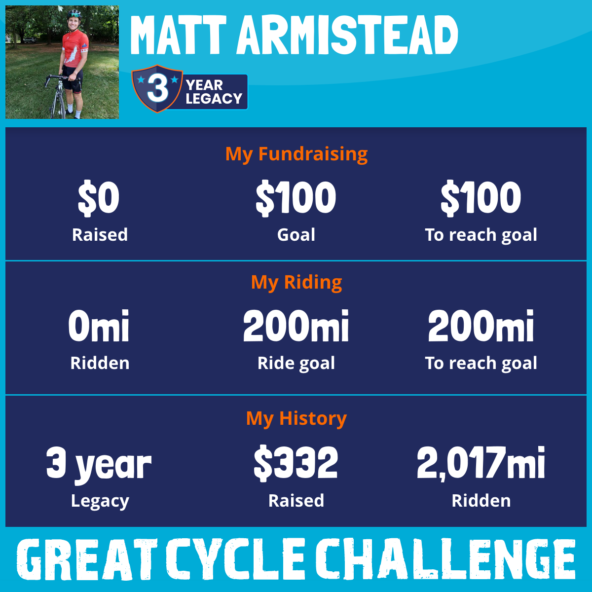 I am riding 200 mi to fight kids' cancer and save little lives. Please sponsor me to support my challenge!