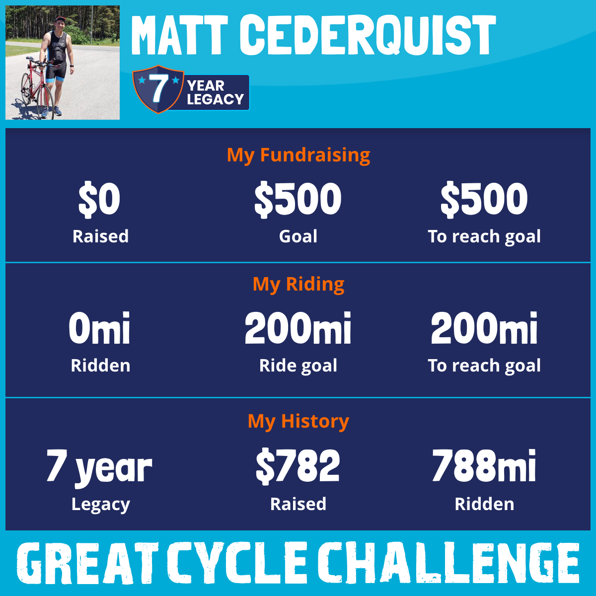 I am riding 200 mi to fight kids' cancer and save little lives. Please sponsor me to support my challenge!
