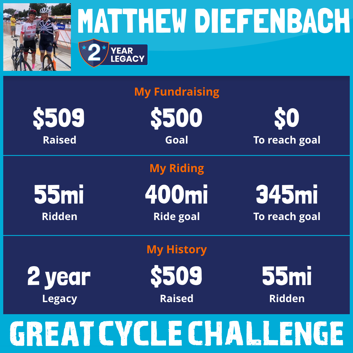 I am riding 400 mi to fight kids' cancer and save little lives. Please sponsor me to support my challenge!