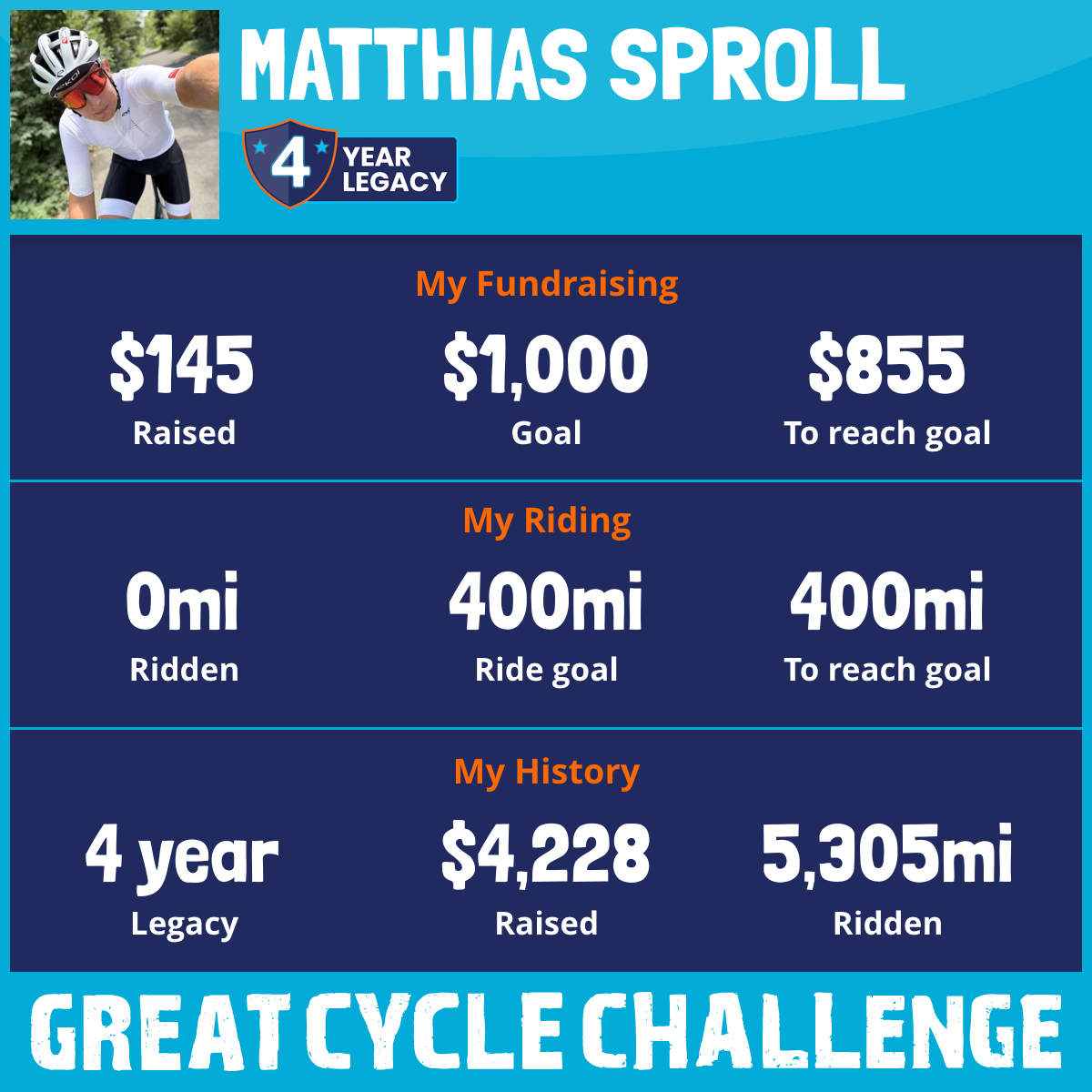 I am riding 400 mi to fight kids' cancer and save little lives. Please sponsor me to support my challenge!