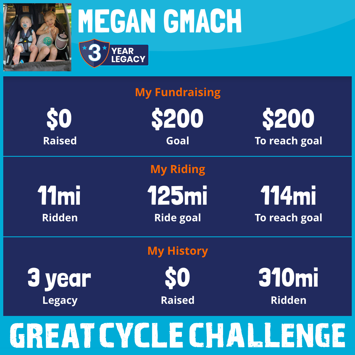 I am riding 125 mi to fight kids' cancer and save little lives. Please sponsor me to support my challenge!