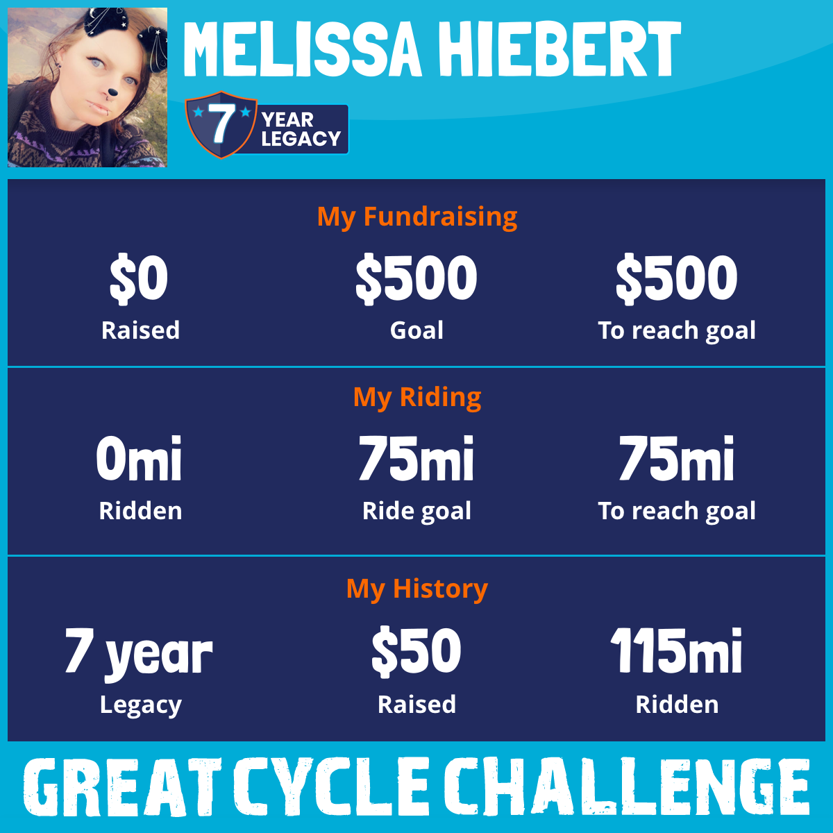 suffered from disability involving tendon and soft tissue deterioration I was to sick to continue in 2023 I ruptured Achilles tendon 10/23 and was taken off any weight bearing exercises and said it would heal on its own if I stayed off of it my grandma passed away 12/23 she was a cervical cancer survivor she ended up loosing her battle to the end stages of copd possible complications of lung cancer but not ever confirmed my uncle was diagnosed with stage 4 lung cancer in January 2024 with an estimate of 4 to 9 month life expectancy in July 2024 I was put in a walking boot until October 18 2024 and told that I may need surgery to repair the tendon in 10/24 while I was still in the boot my mom dad uncle and sister made a road trip to scatter her ashes in December 2024 I lost my uncle to the complications of lung cancer he fought so hard to live and caught pneumonia which got him removed from his clinical trial that seemed to be the only thing helping. A lot has been going on and I still have not done the tendon surgery yet but my dr has given me approval to ride a bike as long as it’s a pedal assisted e bike and I’m not putting to much strain on the tendon so finally after 2 long years I’m back in the challenge and want to do as much as I can to help cure this disease