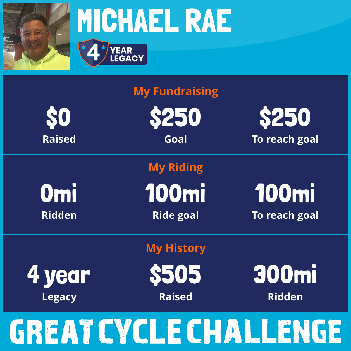 300 mi Ridden$505 Raised2021