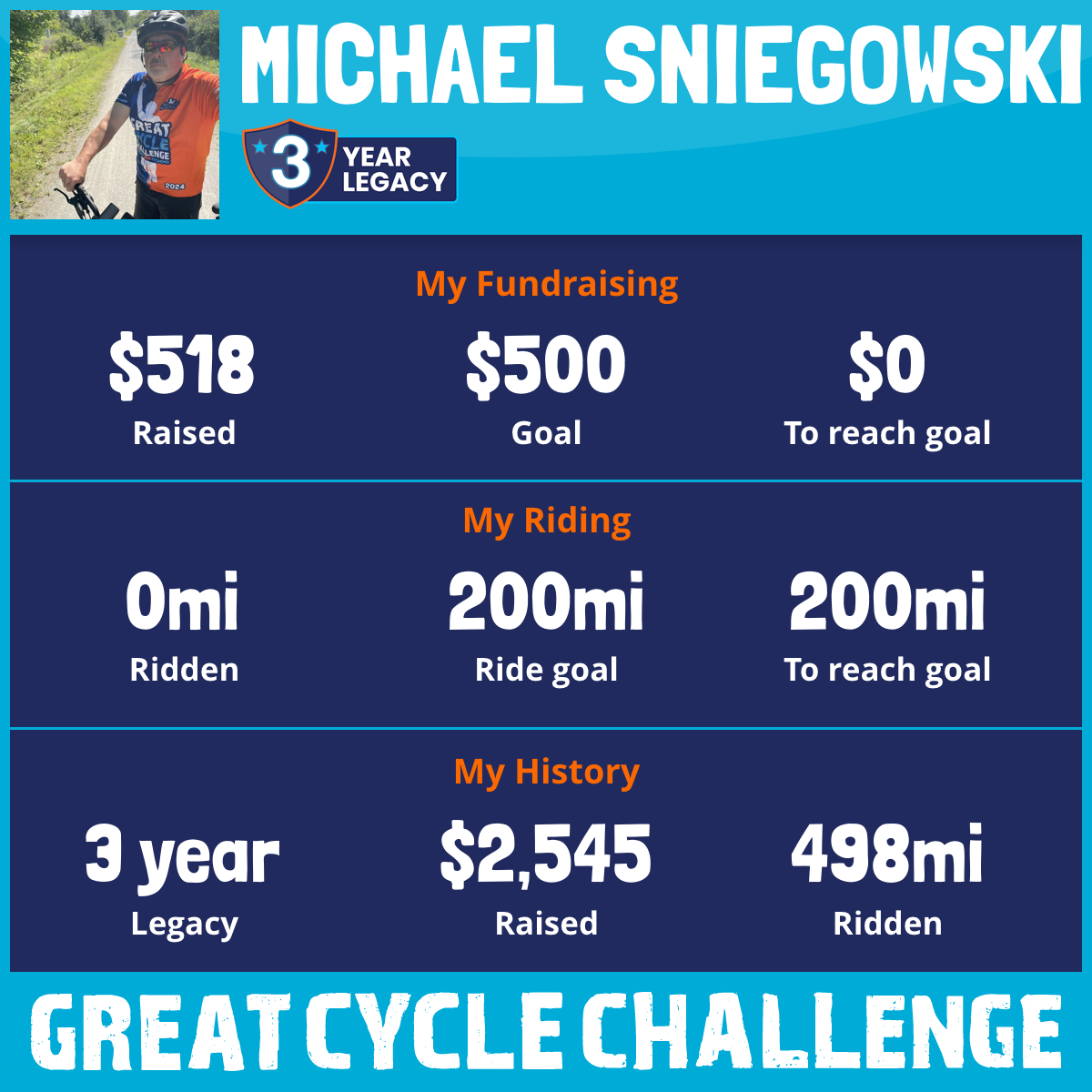 This September, I am taking part in the Great Cycle Challenge to fight kids' cancer! This is my third year riding for the cause. In the first two years I raise over $2000 and rode 500 miles. This year, I'm set a target of $750 but for sure will ride over 200 miles.