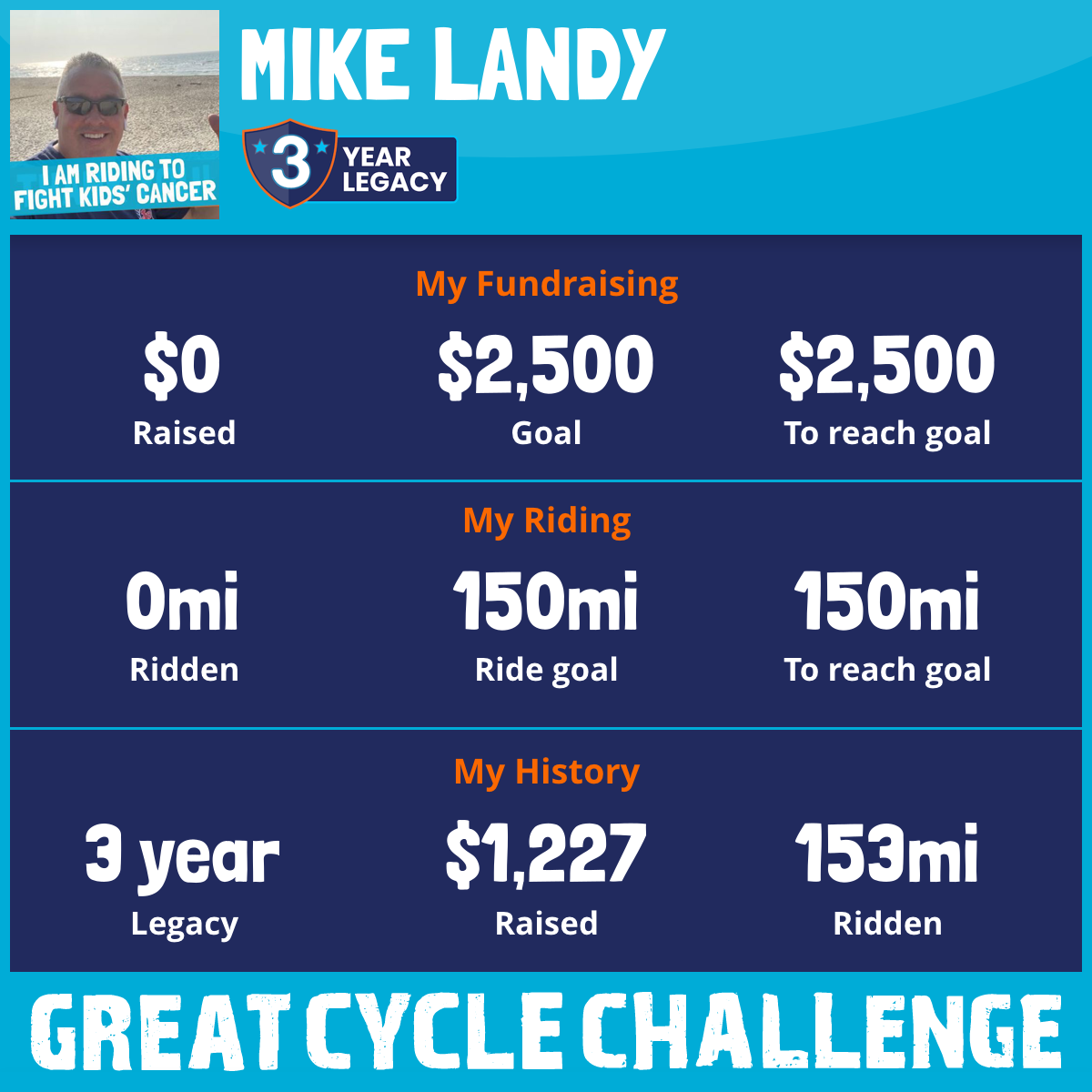 I am riding 150 miles. Please sponsor me and support my challenge to fight kids' cancer and save little lives.