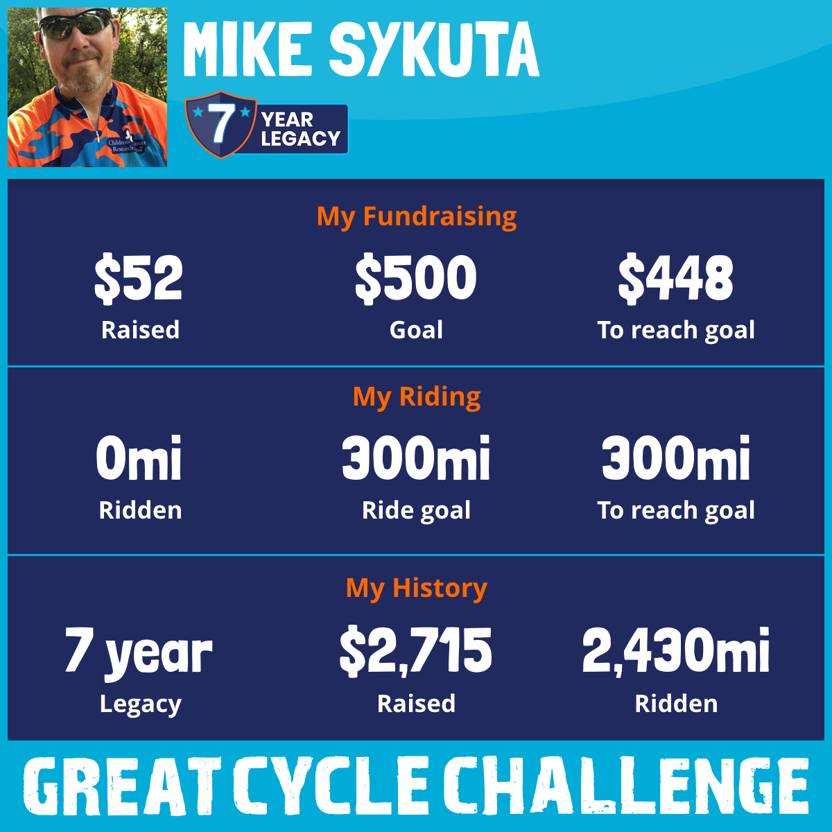 This September, I am taking part in the Great Cycle Challenge to fight kids' cancer! This is my SIXTH year riding in support of this cause.