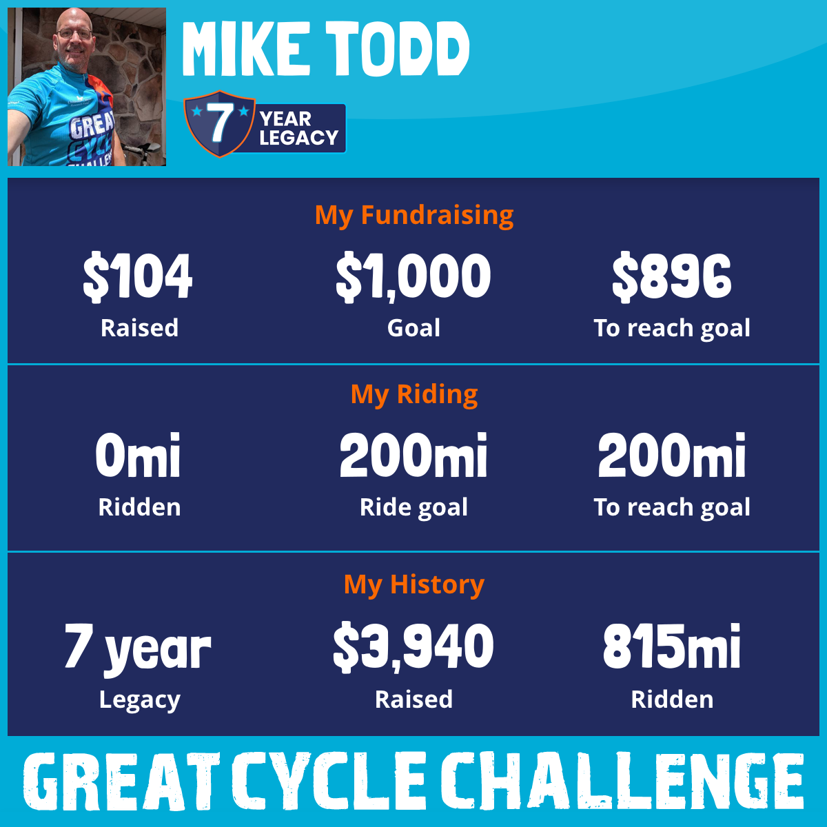 2025 will mark my 7th year taking part in the Great Cycle Challenge to fight kids' cancer!