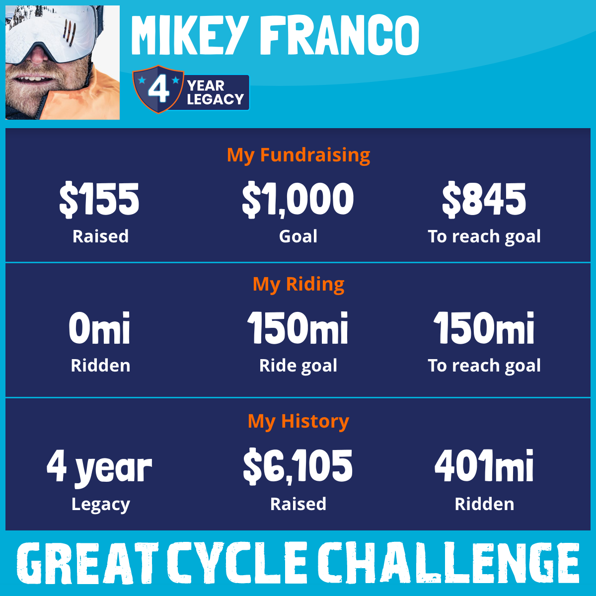 201 mi Ridden$3,134 Raised2023