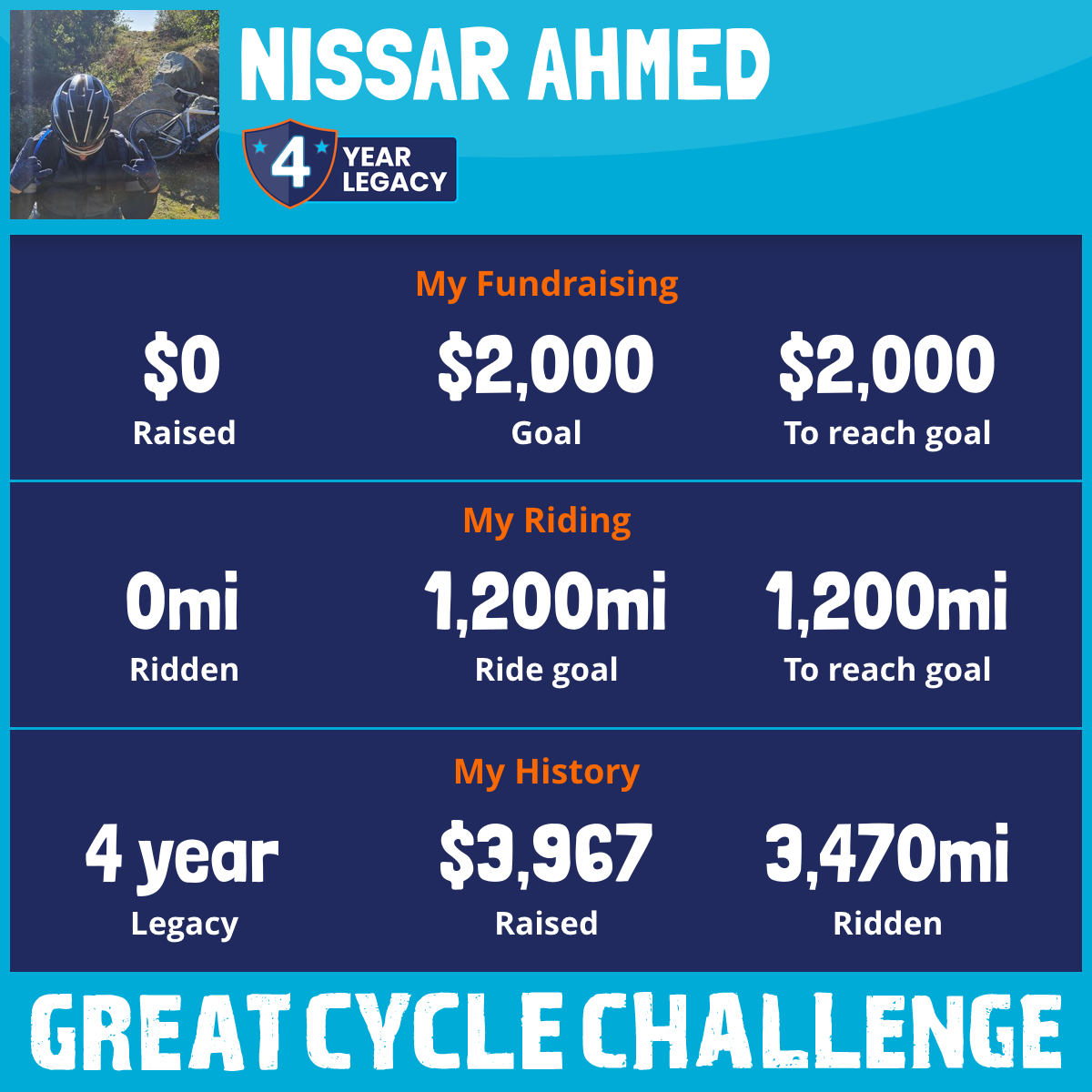 This year is a very special challenge for me as I am an Athletes for Palestine featured athlete dedicating every mile I ride for the children all around the world. Children need to be living life, not fighting for it. I believe in organizations like the Children's Cancer Research Fund now more than ever. Children are always going to need our help as they face life's challenges no matter who they are, place of origin, religious beliefs, and cultural heritage, no matter what.