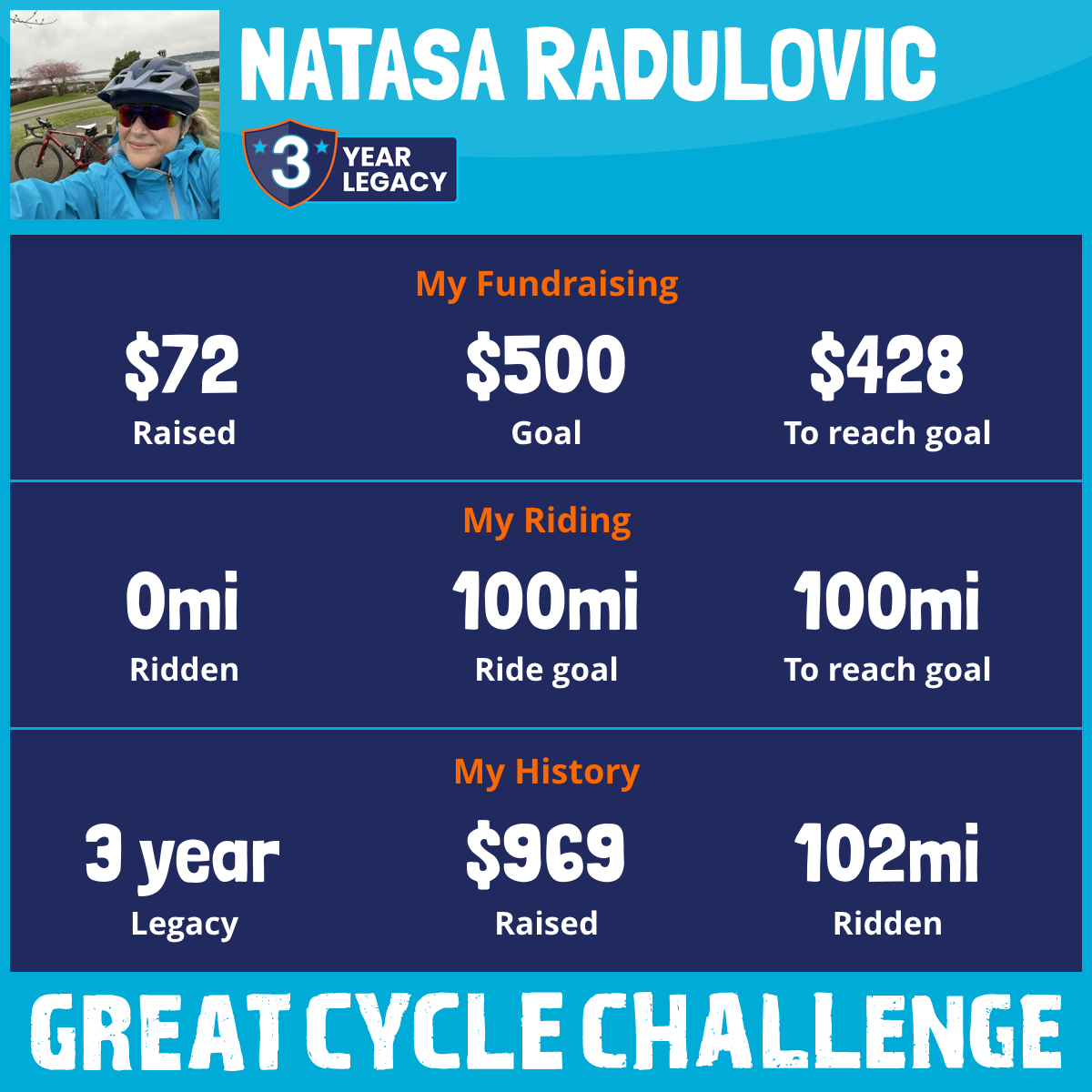 I am riding 100 mi in memory of Vojo. Please sponsor me and support my challenge to fight kids' cancer and save little lives.