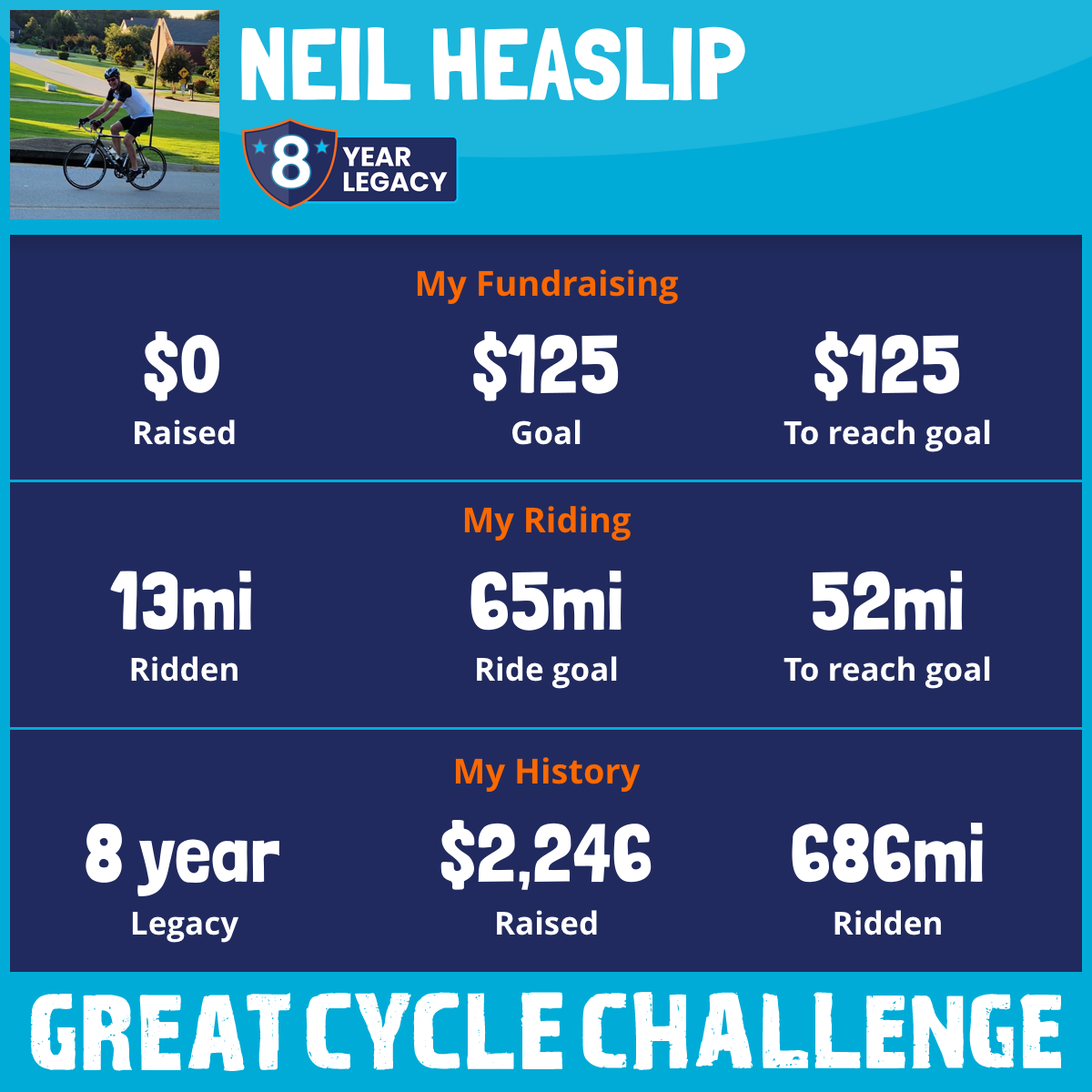 70 mi Ridden$337 Raised2020