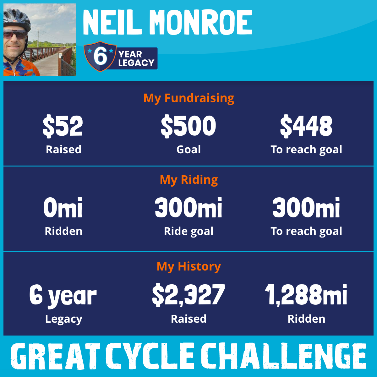 Please consider making a donation to my ride. Every mile I pedal is powered by your generosity—and every dollar brings us closer to a future where kids can just be kids.