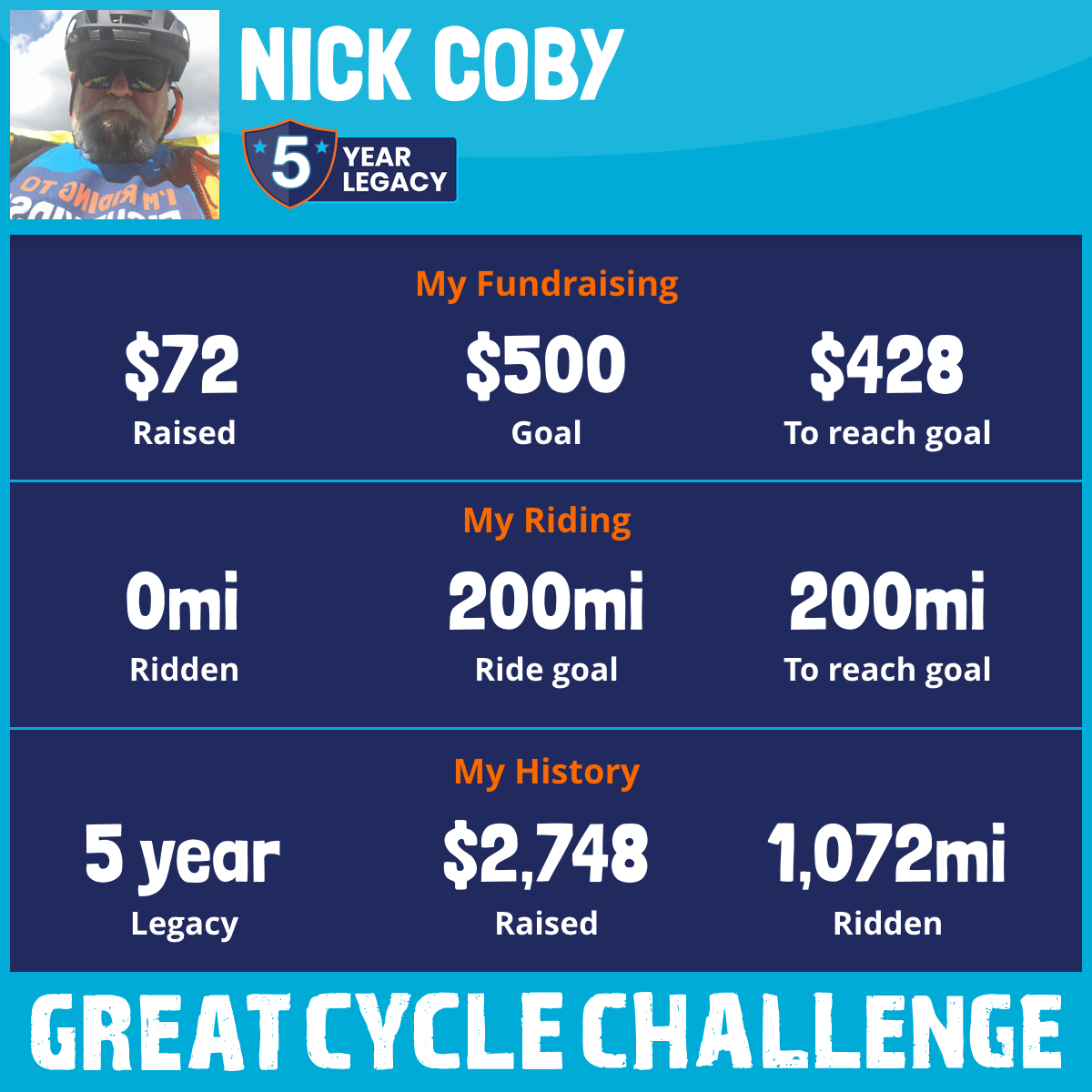 208 mi Ridden$217 Raised2021