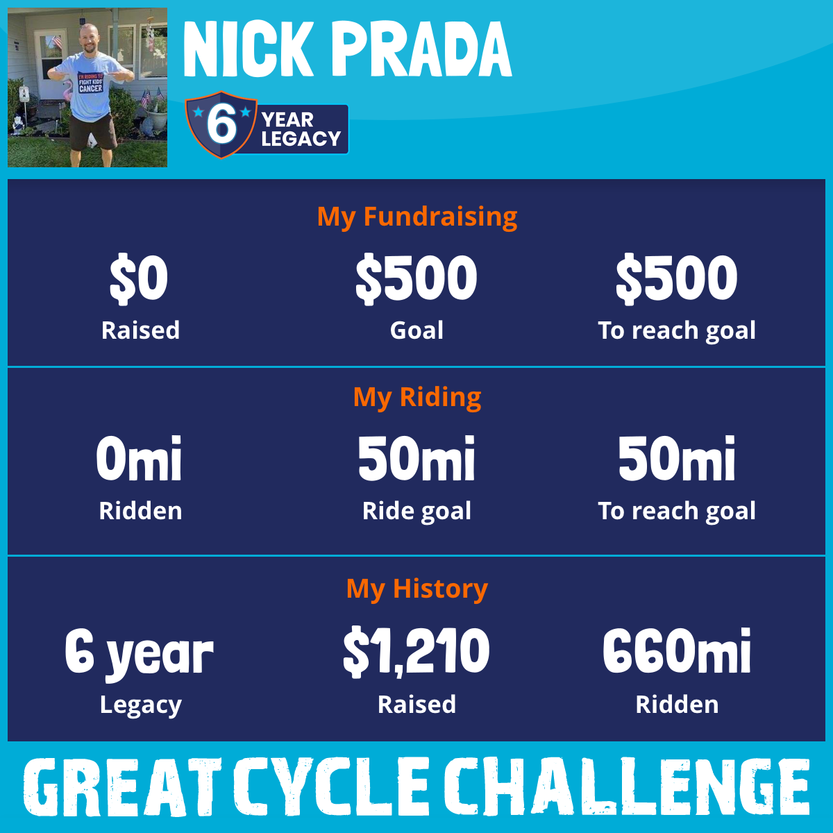 I am riding 30 miles for the kids. Let’s Fight Cancer Together!!! Please sponsor me and support my challenge to fight kids' cancer and save little lives.