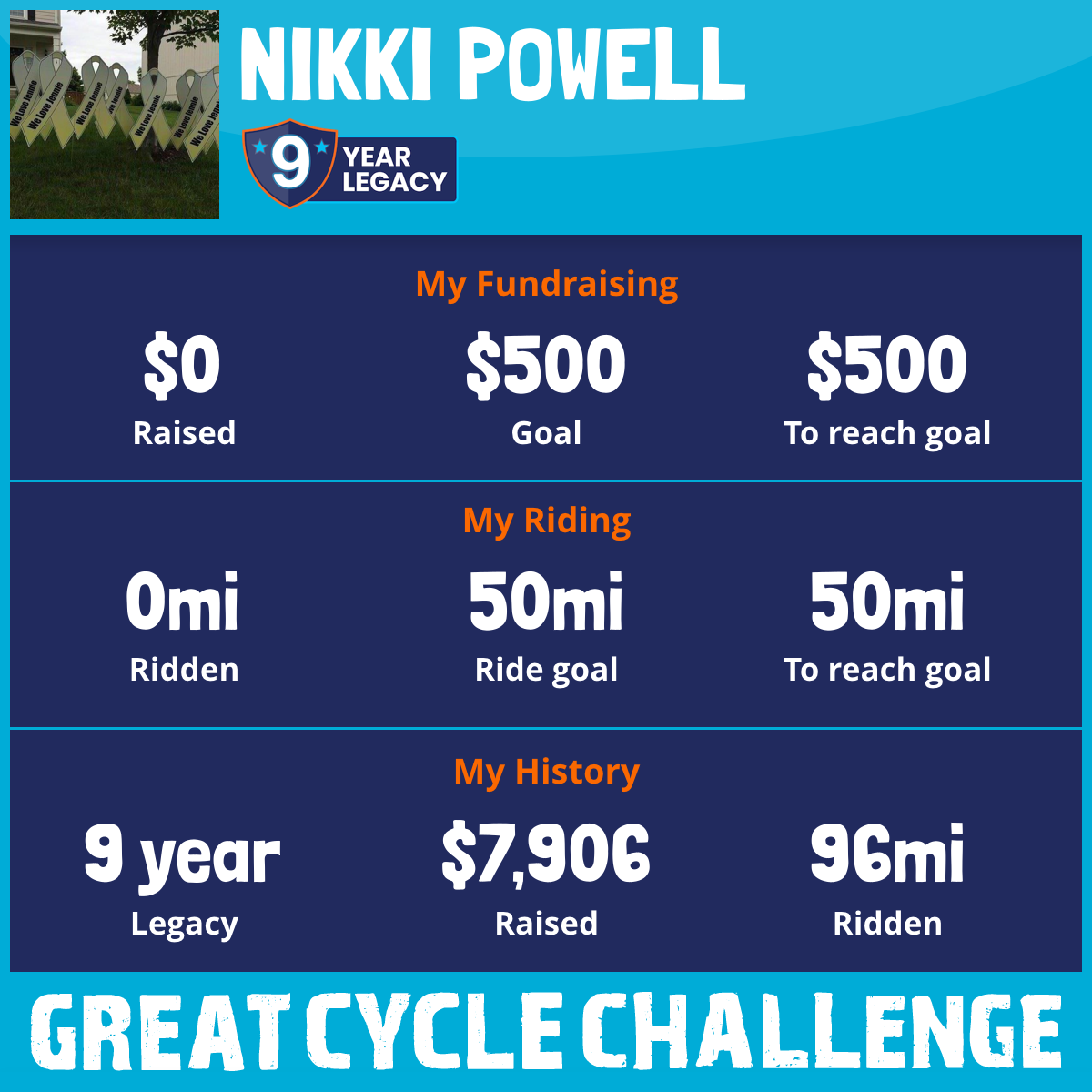 Hey everyone! This is my 9th year in joining T-E-A-M O-S-T-E-O in raising awareness and fundraising in honor of our dear friend, Jennie Nichols. I am asking for your help again this September while we ride (or walk in my case) for those kiddos who are battling cancer and in memory of those who lost their battle. 100% of all donations continue to support the work of Children's Cancer Research Fund. Team Osteo's goal this year is $22,559 and I have absolutely no doubt we will meet that goal! It takes a village to raise this money and Team Osteo appreciates any and all donations. We couldn't do this without all of those family, friends and loved ones who have supported us in the past. Thank you for your consideration!