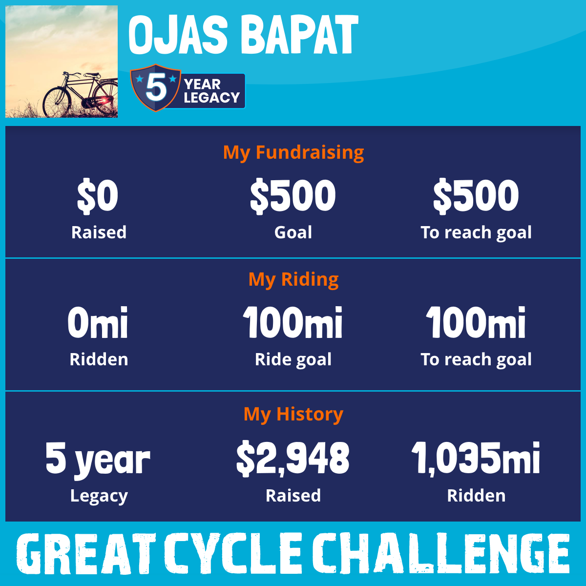 I am riding 100 mi to fight kids' cancer and save little lives. Please sponsor me to support my challenge!