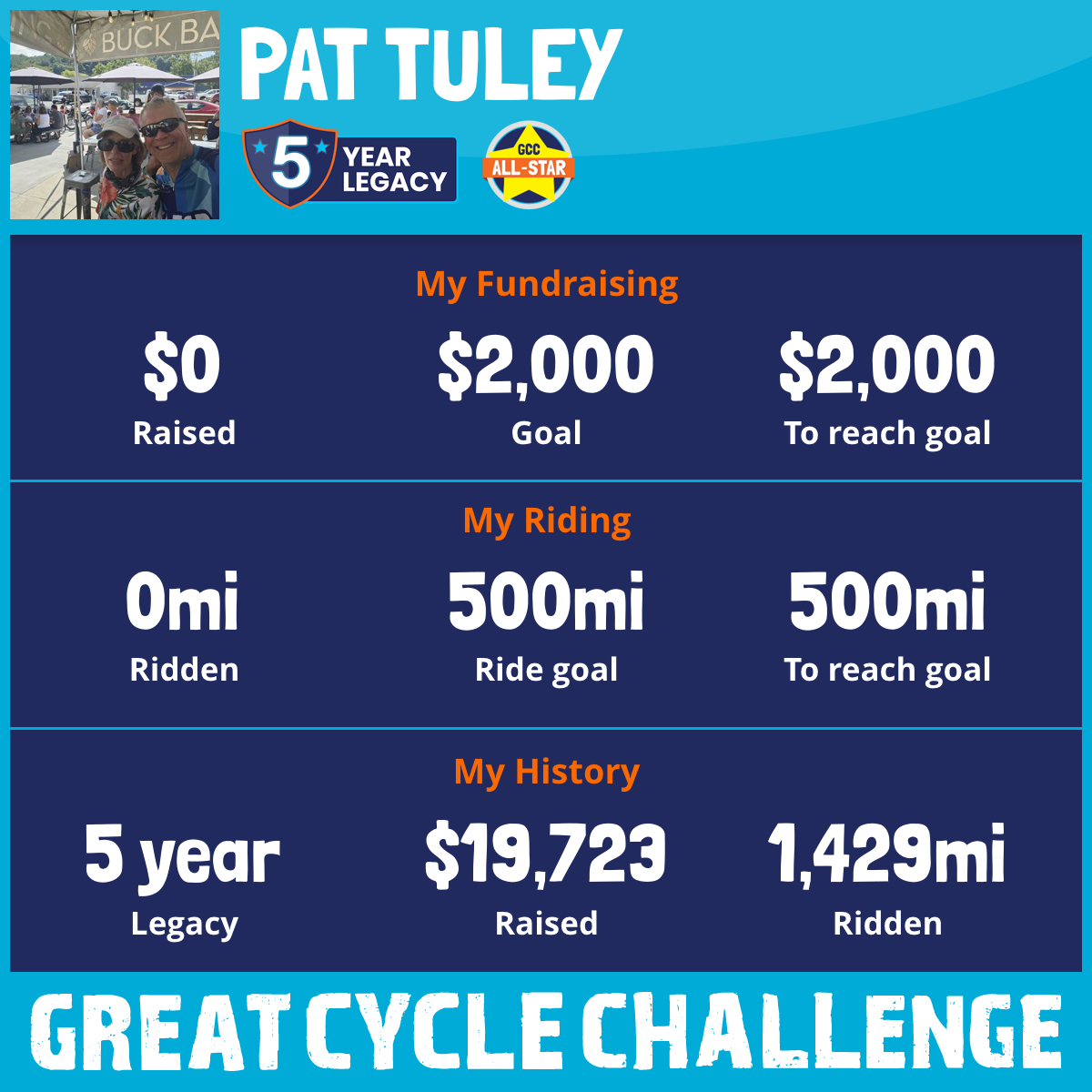 This September 2025 marks my FIFTH year with the Great Cycling Challenge. I am grateful to be able to contribute to this great cause, and thank all of you who have supported me and the Childrens Cancer Research Fund with your donations. To date, thanks to the support of all of my sponsors, I have raised almost $20,000 over the last four years and look forward to eclipsing that mark this year with your help!