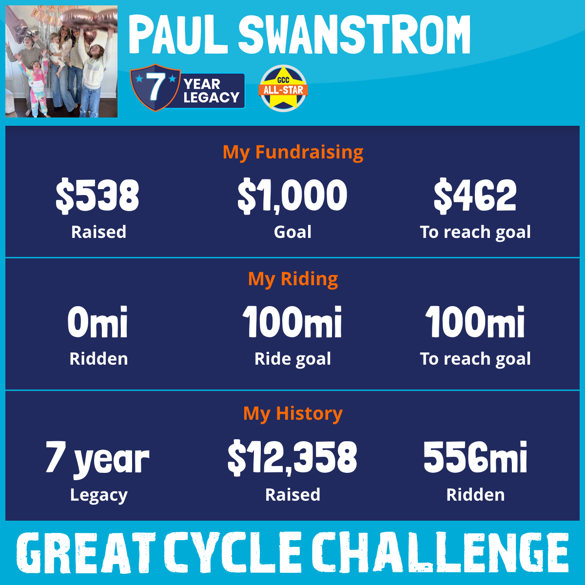 I am riding 100 mi for Grandchildren. Please sponsor me and support my challenge to fight kids' cancer and save little lives.