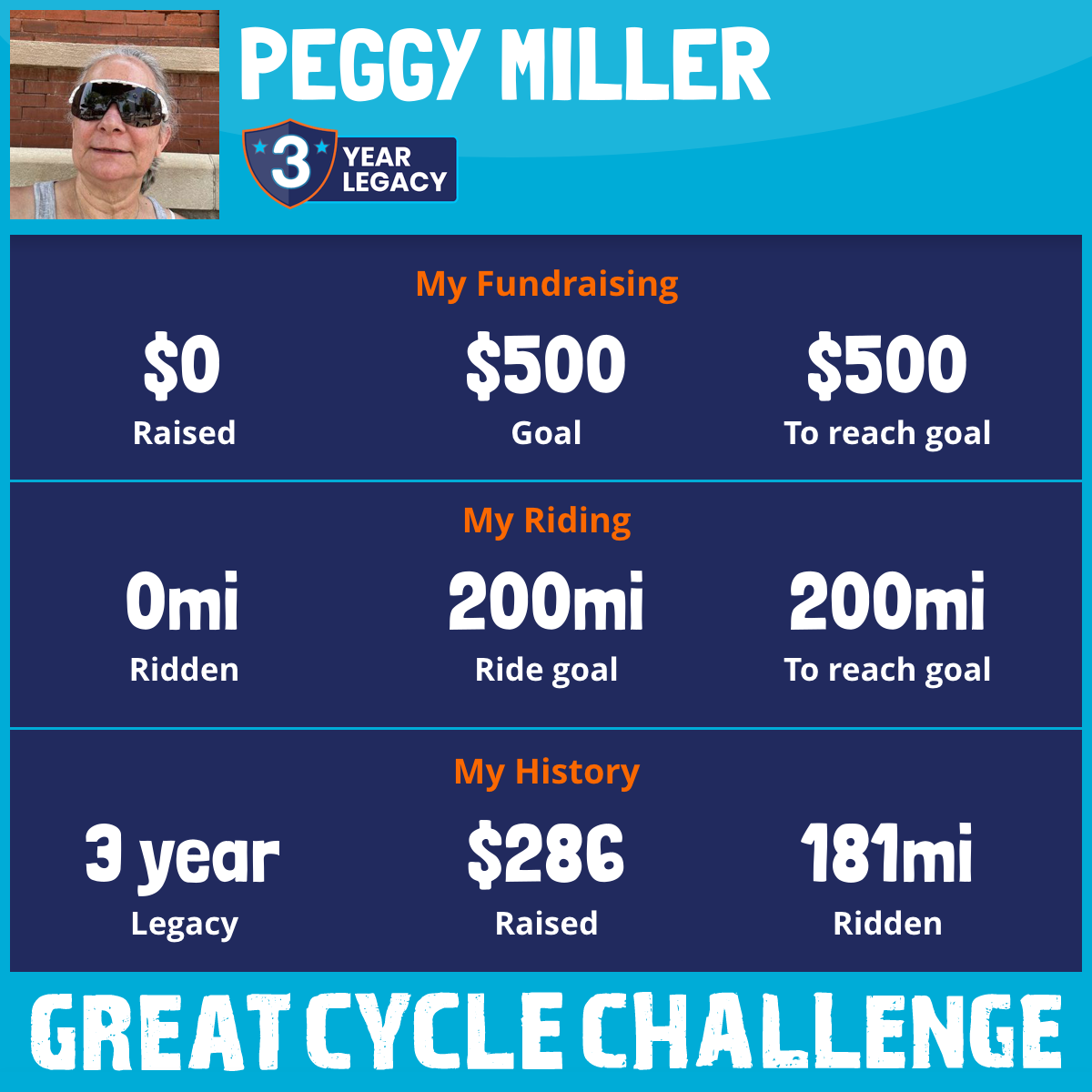 “What a great cause! We are cheering for you, Peggy! Chris and John”