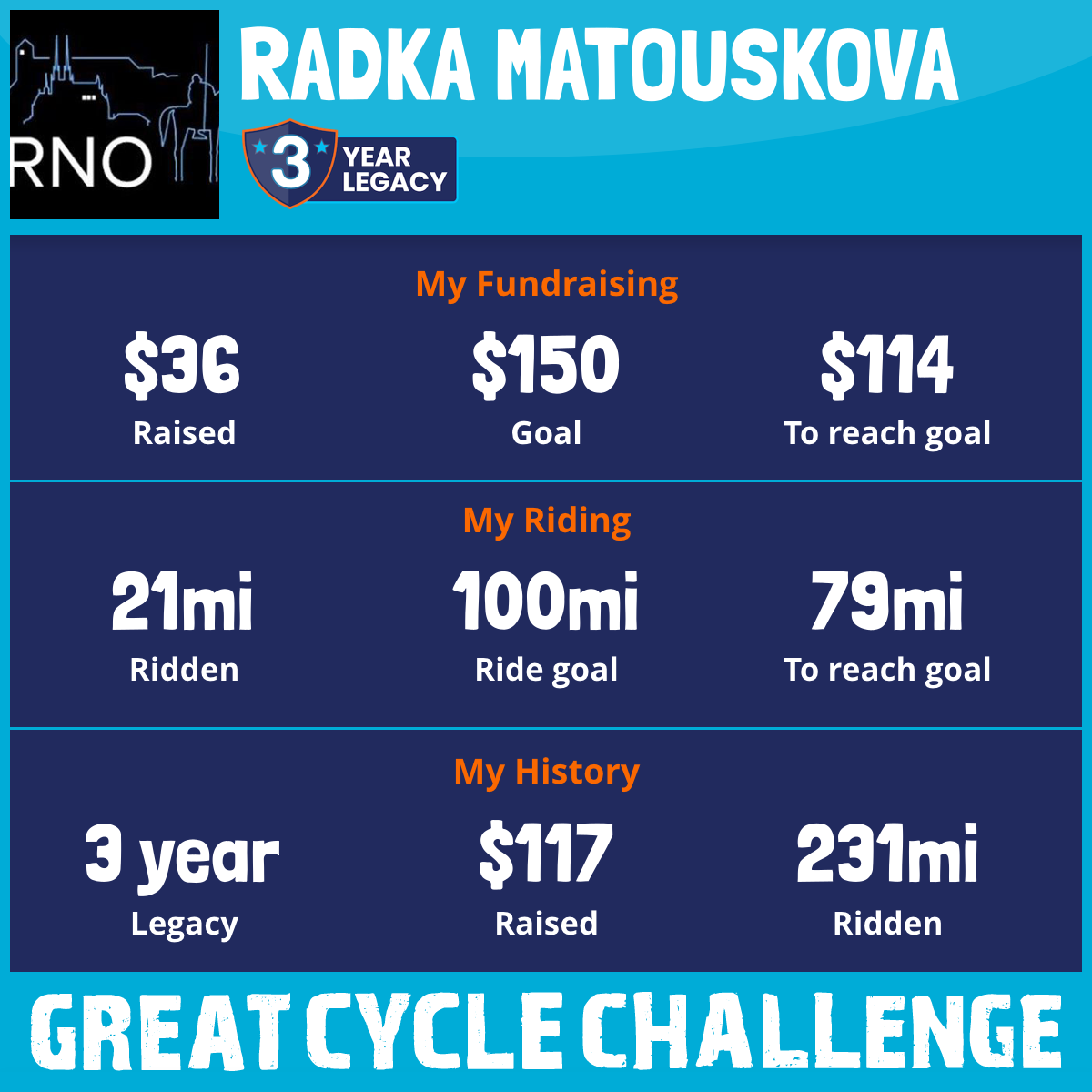I am riding 100 mi to fight kids' cancer and save little lives. Please sponsor me to support my challenge!