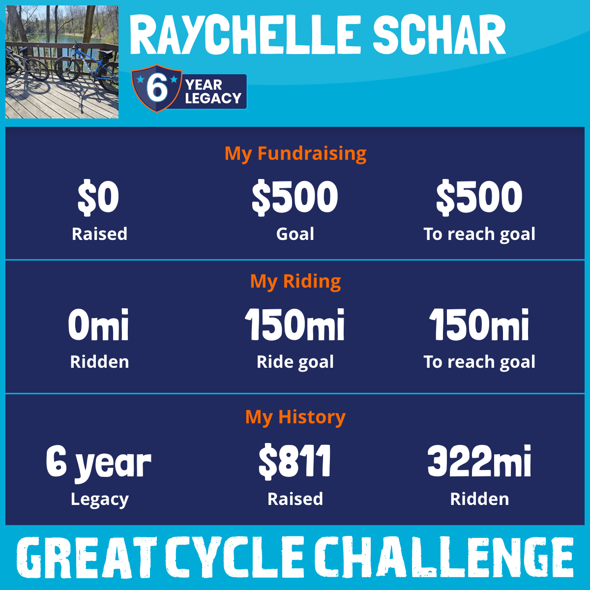 I've raised $0 My goal is $500 Donate Now